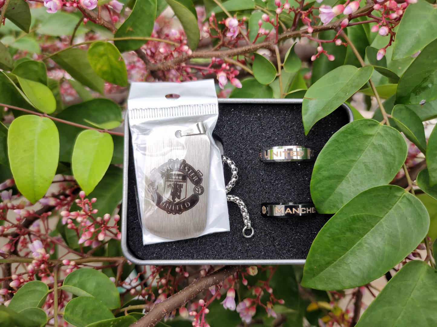 Show your support in style with this Manchester United themed stainless steel accessory set. Built for durability, comfort, and everyday fashion, this set is made to impress.