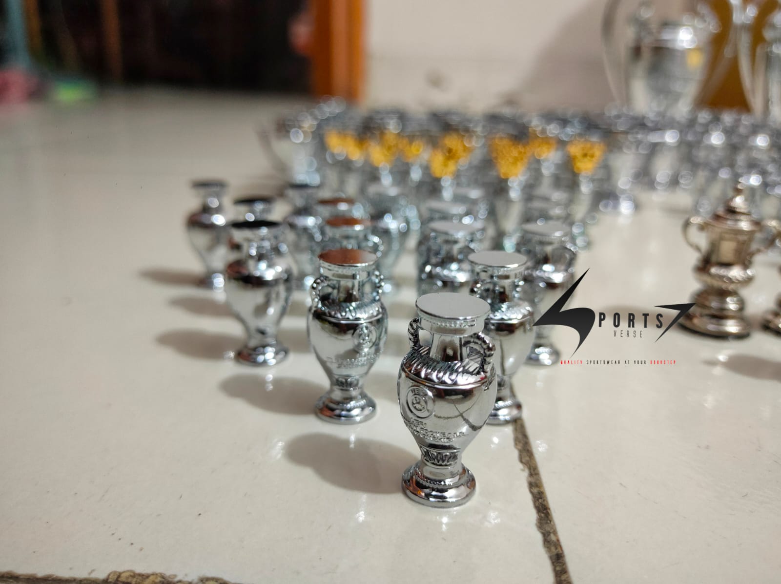 Small decorative trophy with a polished metallic finish, inspired by classic championship designs. Features a smooth sculpted form on a round base, suitable for display on desks, shelves, or cabinets. Ideal as a keepsake, gift item, or sports themed décor piece.